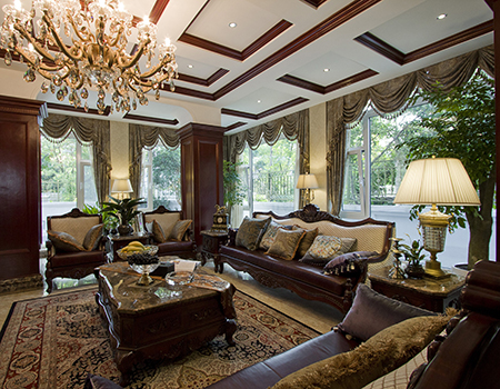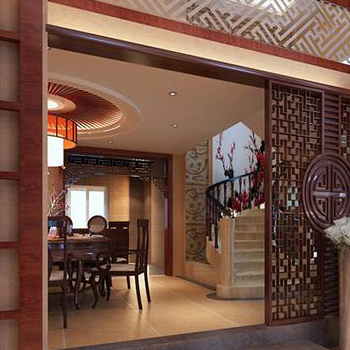 中式風格酒店軟裝,以中式傳統(tǒng)紅黑色為基調(diào),椅子,吊頂,背景墻門的設(shè)計運用到中式回形紋和中式花朵紋樣,結(jié)合香檳金的色彩,沉穩(wěn)中彰顯大氣與古韻,又不失現(xiàn)代感;圓形的桌子搭配金色和紅色布藝,紅色的椅子搭配米色布藝,這兩種搭配都是在中式色彩基礎(chǔ)上做的調(diào)和,華貴典雅;中國水墨畫的運用,更加提升了空間的詩情畫意,又透露出一些書香氣息,相得益彰,使人心神安寧,飾品起到畫龍點睛的作用,水晶燈的運用打破傳統(tǒng)的中式笨拙感,提升與現(xiàn)代的溝通,整個布局為來到這里的人帶來舒心的體驗。