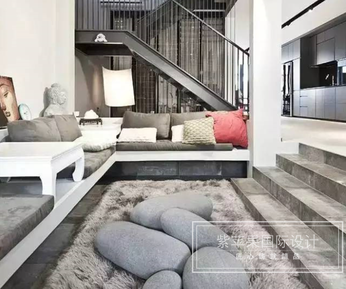 時(shí)下越來越流行一種新的豪宅設(shè)計(jì)方式——下沉式設(shè)計(jì),它的魅力是在對空間進(jìn)行合理應(yīng)用的基礎(chǔ)上,又打破了它傳統(tǒng)的平面布局,通過高低的分隔手法來造景,形成視覺上的凹凸感。跟一覽無余的平面設(shè)計(jì)相比,含而不露的“空間加減”創(chuàng)意設(shè)計(jì),增強(qiáng)了視覺上的美感,看上去別有一番韻味。
