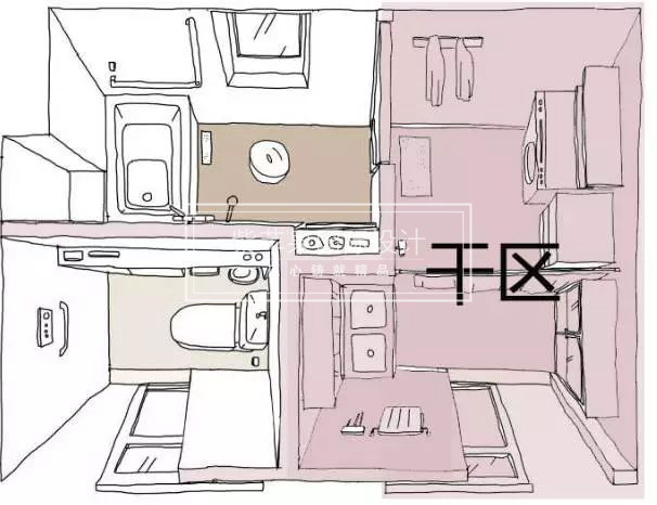 三分離式將干區(qū)、濕區(qū)、如廁進行了完全分開。別裝哥將家務(wù)間、洗漱間統(tǒng)一看作干區(qū),太細化的分類有時反而不方便生活。如果衛(wèi)生間面積比較小,建議只分干區(qū)和濕區(qū)。
