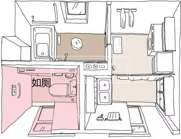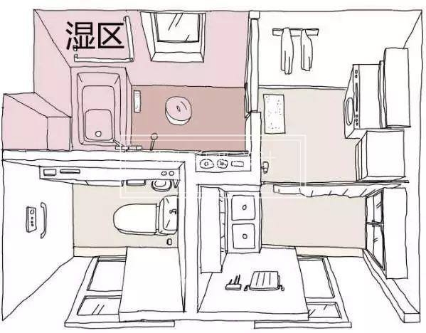 上面所說的干濕分離的三種方式,在實際運用上還是無法完全解決一家人的供需。下圖▼這種將分離做到極致的設(shè)計是日本最新的設(shè)計理念,非常的具有人性化和實用性。
