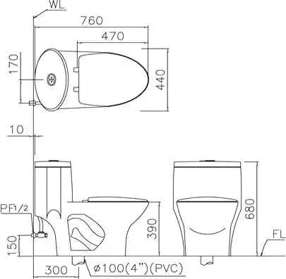 放馬桶要留出80mm*128mm的大小,80mm是人坐著時伸展雙腿較舒服的尺寸,128mm是坐著時身體向前傾的尺寸。安裝馬桶的高度,最好以人體的小腿彎曲與地面距離相距3至8厘米,這樣的高度比較適宜。 如圖▼
