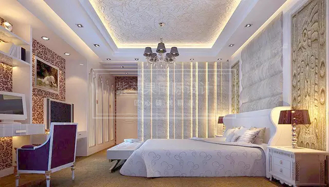 最好不要使用裝飾性太強的懸頂式吊燈,這樣會使房間產(chǎn)生許多陰暗的角落頭上光線太多主導(dǎo)物太強烈,躺在床上燈光還會顯得刺眼。最好使用向上打光的燈,這樣會顯得房頂顯得高,對眼睛也有保護作用。除了主要燈源外,應(yīng)該在放置一盞臺燈或壁燈,這樣方便晚上睡前看看書或者起夜用。