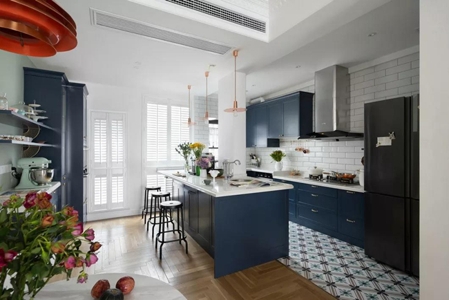 女主人不僅熱愛美食,更愛研究烹飪。所以中西結(jié)合的廚房滿足了同時擁有做湘菜和西品的愿望。在這個作品里,廚房就是女主人施展才藝的地方,設(shè)計把廚房做到盡善盡美,使其在愉悅的心情中完成一道又一道美味佳肴。