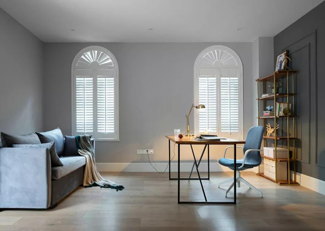 晚上偶爾在這里處理下事務(wù),回復(fù)下朋友發(fā)的郵件,讀完一本休閑的書籍,感受透過百葉窗的光影,時間在這里似乎變得慢悠起來,書不多,一架便是夠的了。