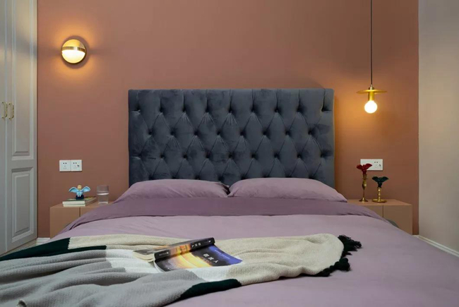 粉色的墻面和溫暖燈芯絨質(zhì)感,柔軟的線條和斑駁搖曳的光影,讓空間在無形中醞釀了一種悠然、平靜的情緒。