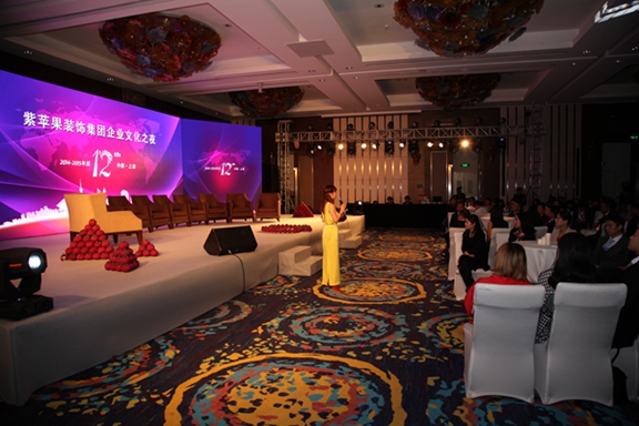 2015年4月16日,紫蘋(píng)果集團(tuán)全國(guó)各地的優(yōu)秀紫人帶著激動(dòng)與喜悅的心情奔赴上海,齊聚上海穎奕皇冠假日酒店,參加集團(tuán)12周年年會(huì)。在五星級(jí)酒店的舒適體驗(yàn)與怡人風(fēng)光中,所有人共同迎接來(lái)了紫蘋(píng)果裝飾集團(tuán)12周年慶的隆重首發(fā)活動(dòng)——企業(yè)文化之夜。