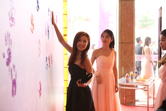入會(huì)的家人在簽到墻上留下自己美美的掌印。