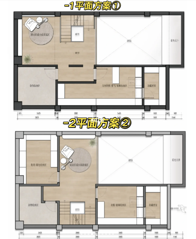 地下室: 修改了樓梯的位置,利用樓梯旁邊的位置做了一個(gè)客衛(wèi),其他區(qū)域分為了會(huì)客區(qū)休閑影視。