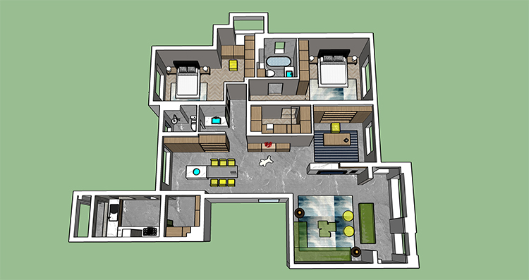 方案一比較常規(guī),進(jìn)門開放處理,做了一個(gè)玄關(guān),兩個(gè)房間朝南,餐廳旁邊做了一個(gè)玻璃移門,平時(shí)可以關(guān)起來(lái)!