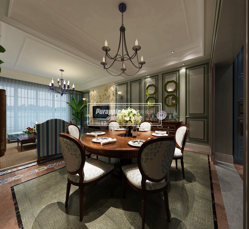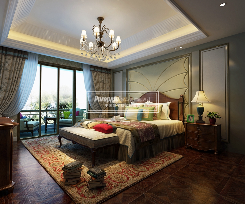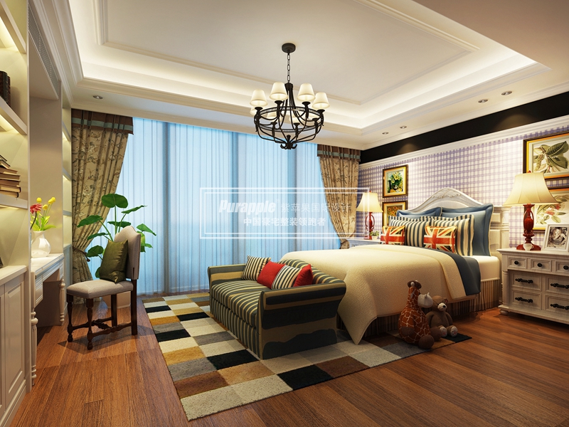 因?yàn)槊朗郊揖语L(fēng)格的這些元素也正好迎合了時(shí)下的文化資產(chǎn)者對(duì)生活方式的需求,所以:有文化感、有貴氣感,還不能缺乏自在感與情調(diào)感。從圖中臥室中窗簾,背景墻,沙發(fā)以及地毯又加上實(shí)木的地板總體的顏色搭配與色調(diào)全全體現(xiàn)了美式風(fēng)格的一個(gè)文化與貴氣。當(dāng)然再加上燈具以及一些家居的呼應(yīng),或許你已經(jīng)覺得自己置身在美國(guó)家中。