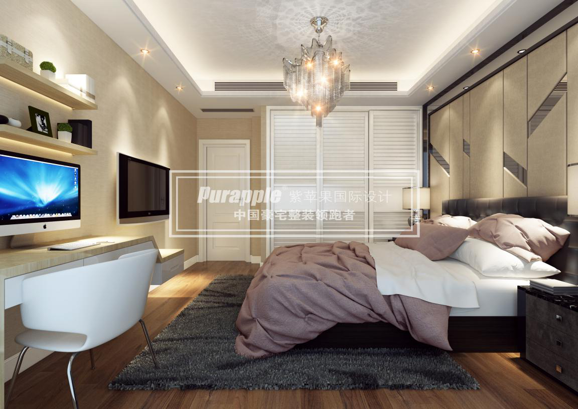 臥室的地面一般以木地板為宜。墻面可用乳膠漆,墻紙或部分軟包裝飾,視需要可對床頭的墻面加以簡單的造型設(shè)計,可兼有一定的使用功能。室內(nèi)平頂宜簡潔或設(shè)少量線腳。